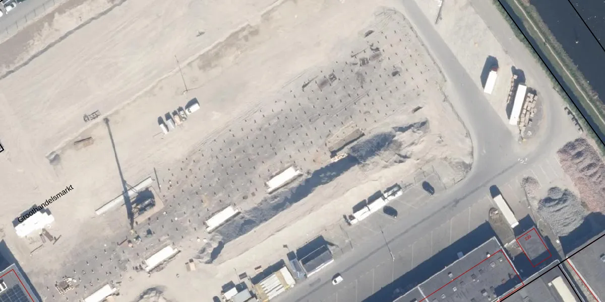 Het perceel waarop Groothandelsmarkt 55 staat heeft een oppervlakte van 7,4 ha. Dit is een zeer groot perceel. De perceeloppervlakte wordt geregistreerd door het Kadaster. Gedetailleerde informatie over de maten van dit perceel kunt u vinden in het rapport Kadastrale kaart met maatvoering van Groothandelsmarkt 55.