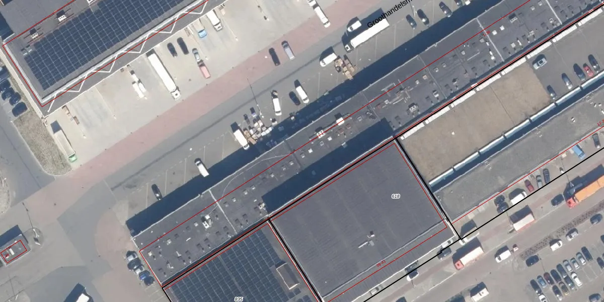 Het perceel waarop Groothandelsmarkt 8 staat heeft een oppervlakte van 7,4 ha. Dit is een zeer groot perceel. De perceeloppervlakte wordt geregistreerd door het Kadaster. Gedetailleerde informatie over de maten van dit perceel kunt u vinden in het rapport Kadastrale kaart met maatvoering van Groothandelsmarkt 8.