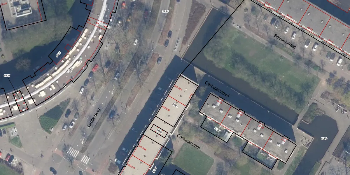 Grote Beer 602 is gelegen op kadastraal perceel HLG03C5601. Deze kadastrale aanduiding is uniek en wordt gebruikt door het Kadaster om eigendomsrechten en andere zakelijke rechten vast te leggen. Het perceel maakt onderdeel uit van de kadastrale gemeente Hillegersberg.