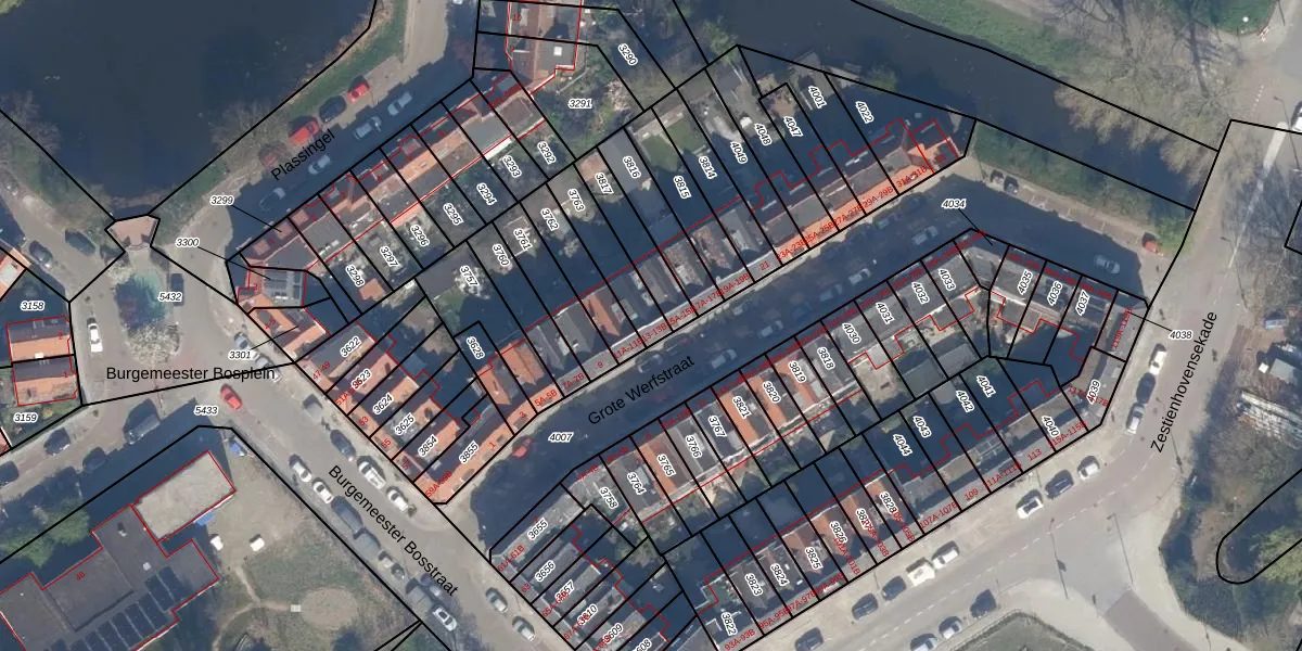 Grote Werfstraat 13-A is gelegen op kadastraal perceel OVS00B3763. Deze kadastrale aanduiding is uniek en wordt gebruikt door het Kadaster om eigendomsrechten en andere zakelijke rechten vast te leggen. Het perceel maakt onderdeel uit van de kadastrale gemeente Overschie.