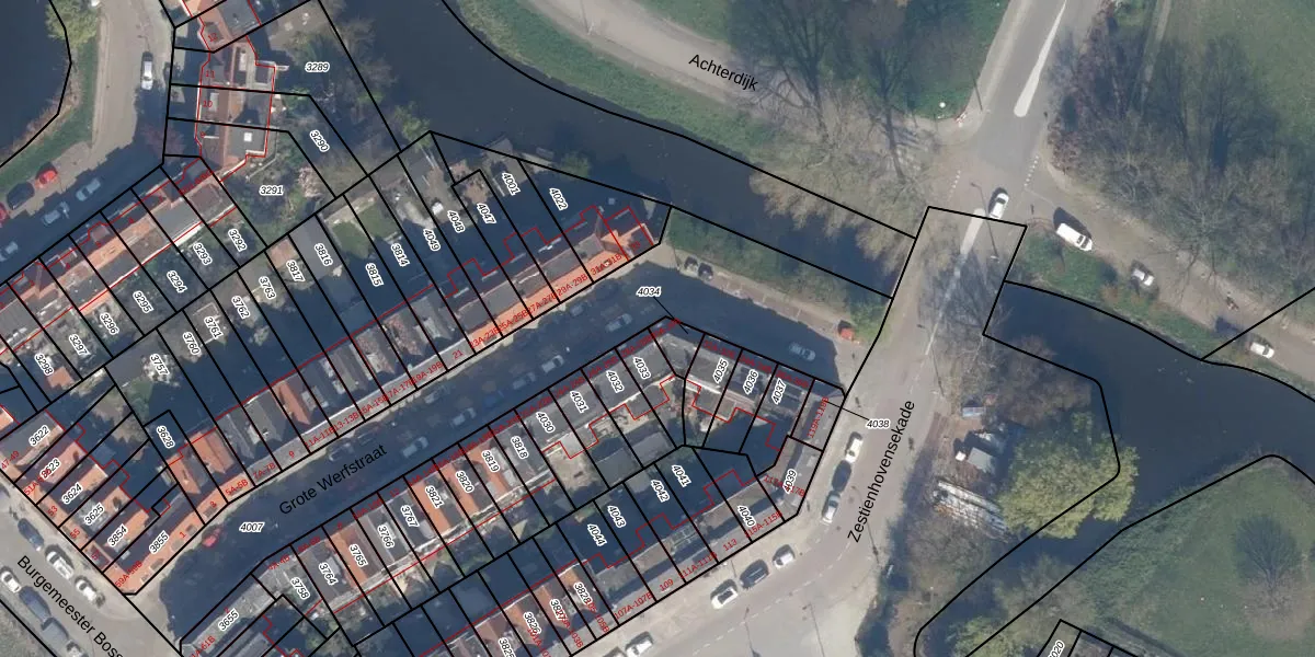 Grote Werfstraat 30-B is gelegen op kadastraal perceel OVS00B4034. Deze kadastrale aanduiding is uniek en wordt gebruikt door het Kadaster om eigendomsrechten en andere zakelijke rechten vast te leggen. Het perceel maakt onderdeel uit van de kadastrale gemeente Overschie.