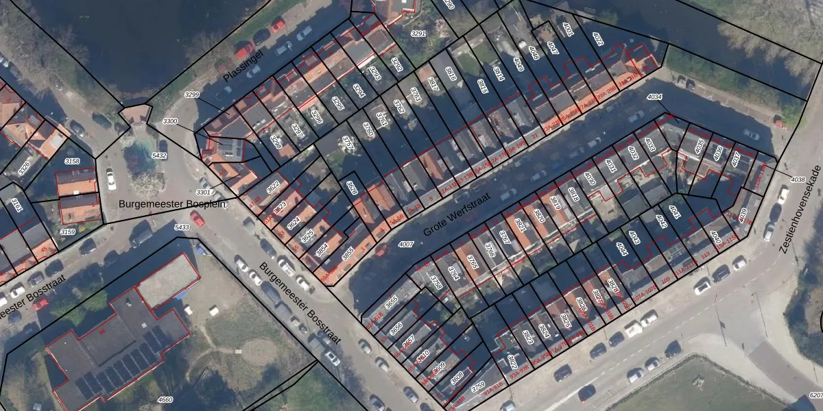 Grote Werfstraat 7-B is gelegen op kadastraal perceel OVS00B3760. Deze kadastrale aanduiding is uniek en wordt gebruikt door het Kadaster om eigendomsrechten en andere zakelijke rechten vast te leggen. Het perceel maakt onderdeel uit van de kadastrale gemeente Overschie.