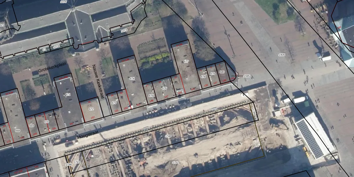 Het perceel waarop Grotekerkplein 16 staat heeft een oppervlakte van 355 m². Dit is een groot perceel. De perceeloppervlakte wordt geregistreerd door het Kadaster. Gedetailleerde informatie over de maten van dit perceel kunt u vinden in het rapport Kadastrale kaart met maatvoering van Grotekerkplein 16.