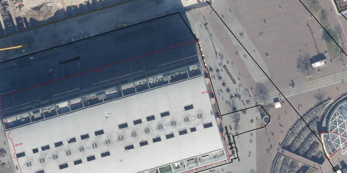 Het perceel waarop Grotemarkt 84 staat heeft een oppervlakte van 1,3 ha. Dit is een zeer groot perceel. De perceeloppervlakte wordt geregistreerd door het Kadaster. Gedetailleerde informatie over de maten van dit perceel kunt u vinden in het rapport Kadastrale kaart met maatvoering van Grotemarkt 84.