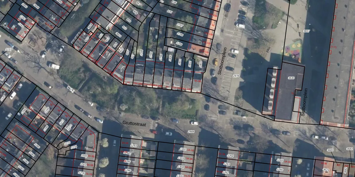 Gruttostraat 51-B is gelegen op kadastraal perceel CLS00H1801. Deze kadastrale aanduiding is uniek en wordt gebruikt door het Kadaster om eigendomsrechten en andere zakelijke rechten vast te leggen. Het perceel maakt onderdeel uit van de kadastrale gemeente Charlois.