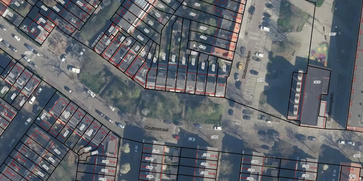 Gruttostraat 55-A is gelegen op kadastraal perceel CLS00H1796. Deze kadastrale aanduiding is uniek en wordt gebruikt door het Kadaster om eigendomsrechten en andere zakelijke rechten vast te leggen. Het perceel maakt onderdeel uit van de kadastrale gemeente Charlois.