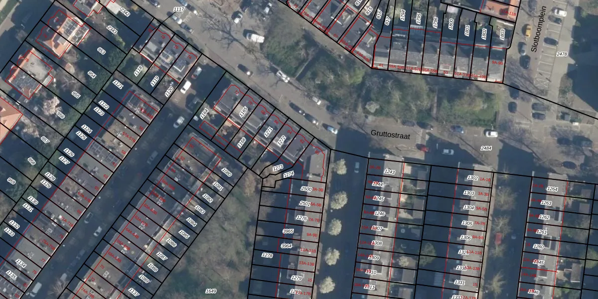 Gruttostraat 62 is gelegen op kadastraal perceel CLS00H1273. Deze kadastrale aanduiding is uniek en wordt gebruikt door het Kadaster om eigendomsrechten en andere zakelijke rechten vast te leggen. Het perceel maakt onderdeel uit van de kadastrale gemeente Charlois.