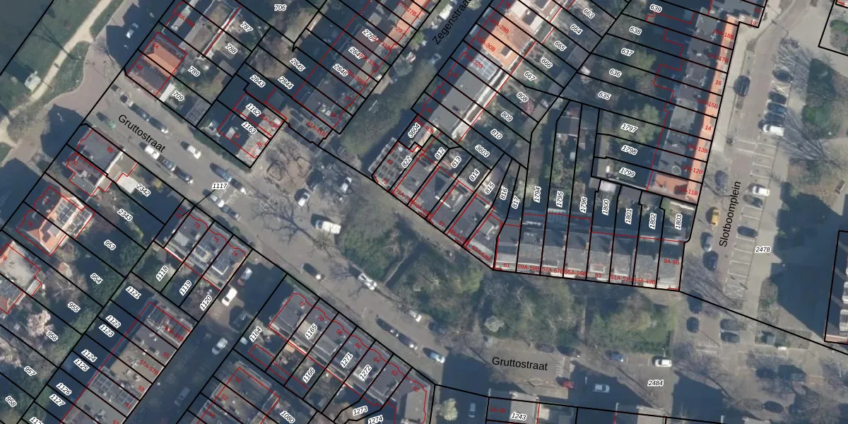 Gruttostraat 69-A is gelegen op kadastraal perceel CLS00H813. Deze kadastrale aanduiding is uniek en wordt gebruikt door het Kadaster om eigendomsrechten en andere zakelijke rechten vast te leggen. Het perceel maakt onderdeel uit van de kadastrale gemeente Charlois.