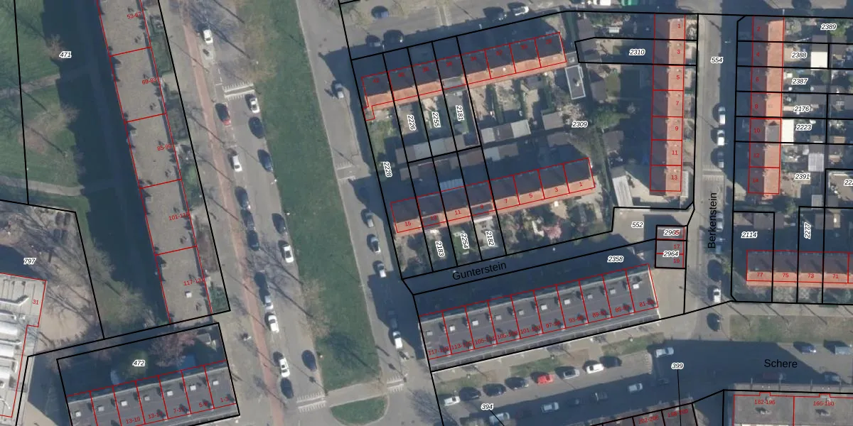 Gunterstein 13 is gelegen op kadastraal perceel CLS00K2183. Deze kadastrale aanduiding is uniek en wordt gebruikt door het Kadaster om eigendomsrechten en andere zakelijke rechten vast te leggen. Het perceel maakt onderdeel uit van de kadastrale gemeente Charlois.