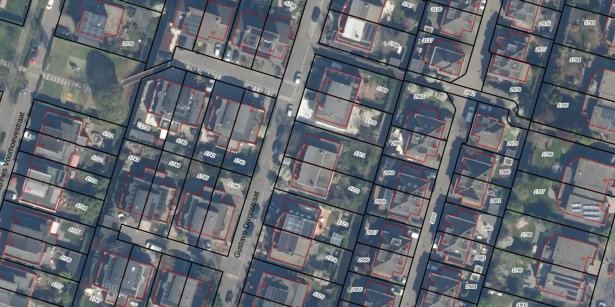 Het perceel waarop Gustave Dixonstraat 29 staat heeft een oppervlakte van 361 m². Dit is een groot perceel. De perceeloppervlakte wordt geregistreerd door het Kadaster. Gedetailleerde informatie over de maten van dit perceel kunt u vinden in het rapport Kadastrale kaart met maatvoering van Gustave Dixonstraat 29.