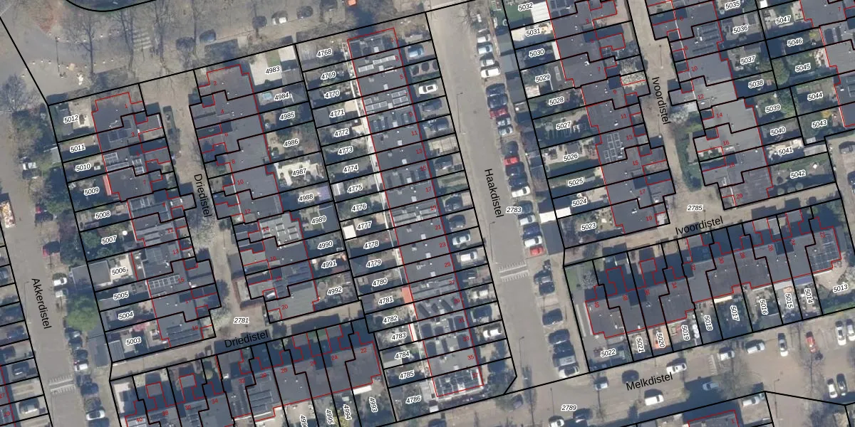 Haakdistel 19 is gelegen op kadastraal perceel HLG03B4777. Deze kadastrale aanduiding is uniek en wordt gebruikt door het Kadaster om eigendomsrechten en andere zakelijke rechten vast te leggen. Het perceel maakt onderdeel uit van de kadastrale gemeente Hillegersberg.