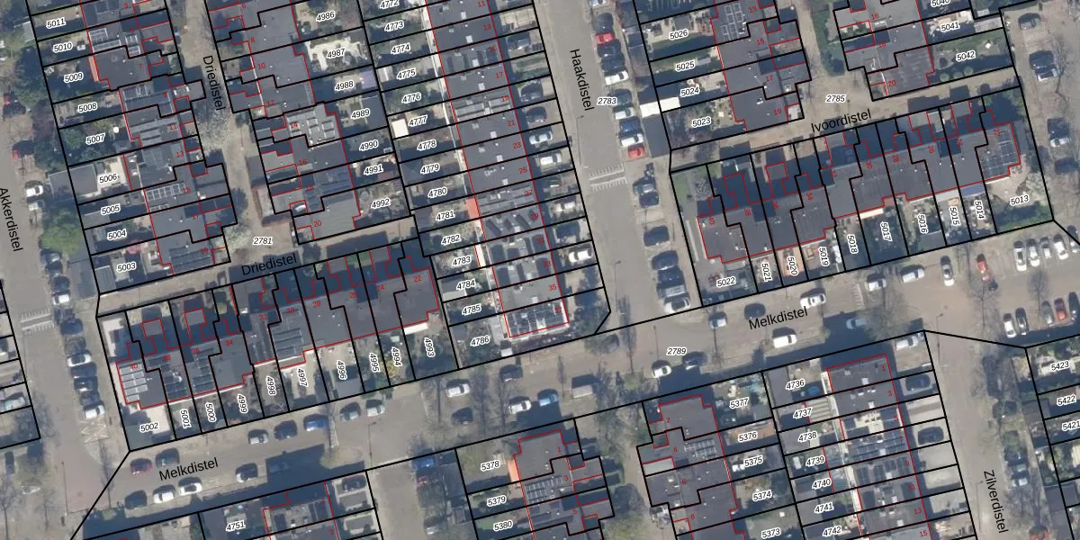 Het perceel waarop Haakdistel 33 staat heeft een oppervlakte van 135 m². Dit is een middelgroot perceel. De perceeloppervlakte wordt geregistreerd door het Kadaster. Gedetailleerde informatie over de maten van dit perceel kunt u vinden in het rapport Kadastrale kaart met maatvoering van Haakdistel 33.