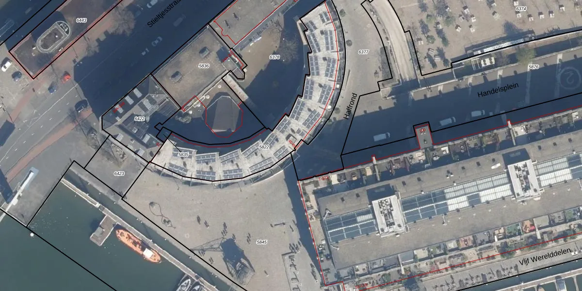 Halfrond 53 is gelegen op kadastraal perceel RTD05Q5822. Deze kadastrale aanduiding is uniek en wordt gebruikt door het Kadaster om eigendomsrechten en andere zakelijke rechten vast te leggen. Het perceel maakt onderdeel uit van de kadastrale gemeente Rotterdam.