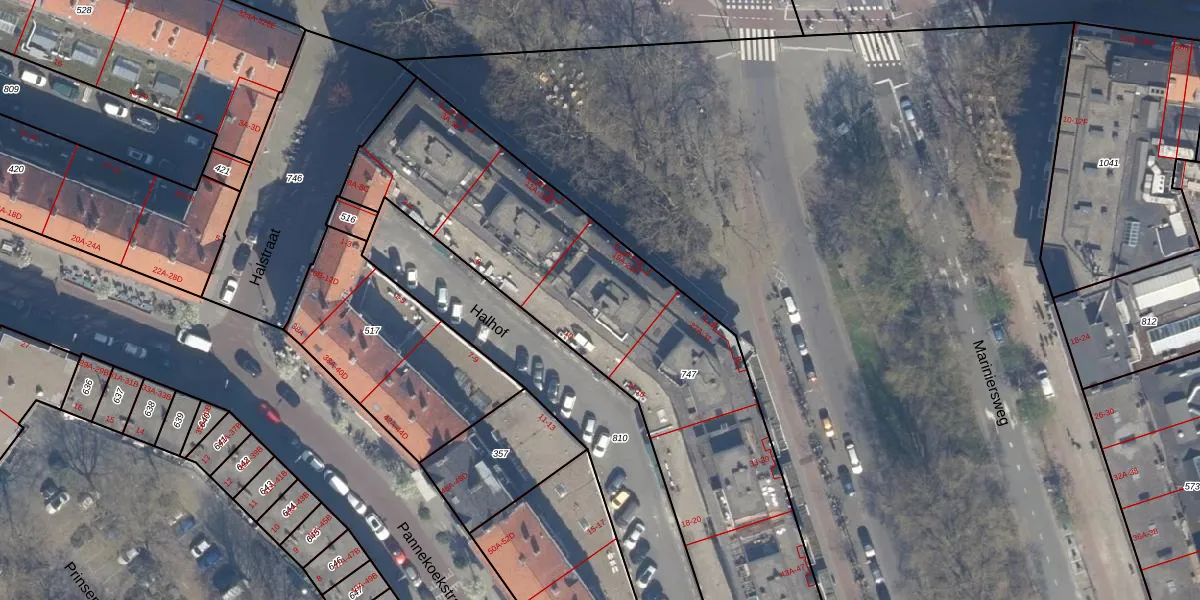 Het adres is gelegen op perceel 747 in de sectie AF en de kadastrale gemeente Rotterdam. De kadastrale aanduiding is aldus RTD04-AF-747. Het perceel is met 2513 m² relatief groot. Het gemiddelde ligt in de kadastrale gemeente Rotterdam op 1239,97 m². De grootste perceeloppervlakte in de kadastrale gemeente is 17,3 ha. De kleinste oppervlakte bedraagt 0 m². Op het perceel zijn 95 adressen aanwezig. De huidige grenzen van het perceel zijn digitaal in de Basisregistratie Kadaster (BRK) geregistreerd op 20-01-2003.