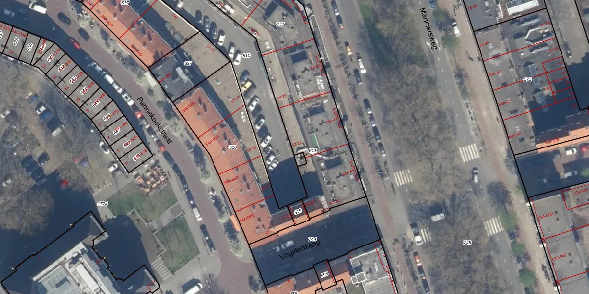 Het adres ligt op het perceel RTD04-AF-747, dat zich in de kadastrale gemeente Rotterdam bevindt. De oppervlakte van het perceel is 2513 m². Dat is groter dan gemiddeld in Rotterdam, waar de gemiddelde perceeloppervlakte op 1239,97 m² ligt. Het grootste perceel in de kadastrale gemeente is 17,3 ha. Het kleinste perceel heeft een oppervlakte van 0 m². Er zijn 95 adressen aanwezig op het perceel. De laatste wijziging in het de Basisregistratie Kadaster (BRK) was op 20-01-2003.