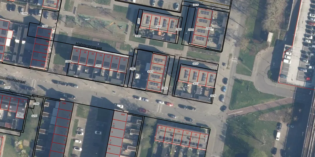 Halsterenstraat 14 is gelegen op kadastraal perceel CLS00L3003. Deze kadastrale aanduiding is uniek en wordt gebruikt door het Kadaster om eigendomsrechten en andere zakelijke rechten vast te leggen. Het perceel maakt onderdeel uit van de kadastrale gemeente Charlois.