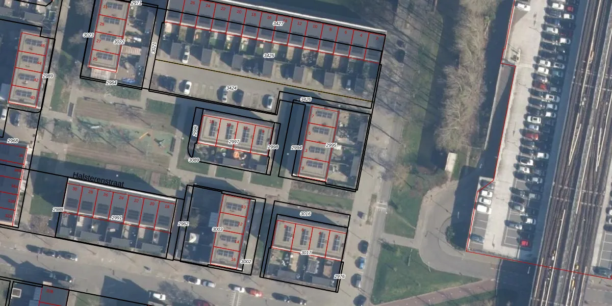 Halsterenstraat 3 is gelegen op kadastraal perceel CLS00L2995. Deze kadastrale aanduiding is uniek en wordt gebruikt door het Kadaster om eigendomsrechten en andere zakelijke rechten vast te leggen. Het perceel maakt onderdeel uit van de kadastrale gemeente Charlois.
