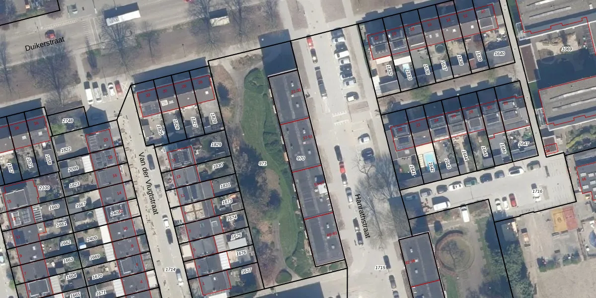 Het perceel waarop Hanrathstraat 47 staat heeft een oppervlakte van 675 m². Dit is een groot perceel. De perceeloppervlakte wordt geregistreerd door het Kadaster. Gedetailleerde informatie over de maten van dit perceel kunt u vinden in het rapport Kadastrale kaart met maatvoering van Hanrathstraat 47.