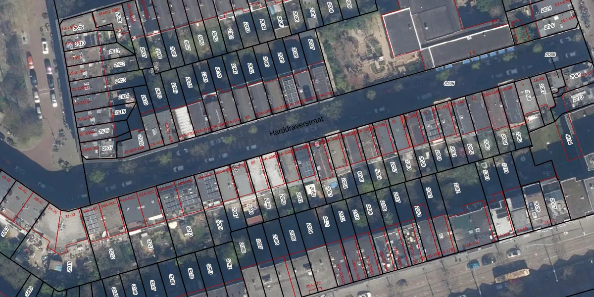 Harddraverstraat 34-B is gelegen op kadastraal perceel RTD10Z2052. Deze kadastrale aanduiding is uniek en wordt gebruikt door het Kadaster om eigendomsrechten en andere zakelijke rechten vast te leggen. Het perceel maakt onderdeel uit van de kadastrale gemeente Rotterdam.