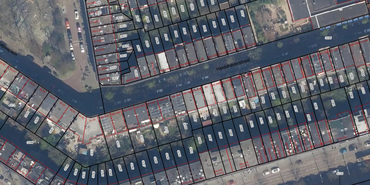 Harddraverstraat 44-A is gelegen op kadastraal perceel RTD10Z2047. Deze kadastrale aanduiding is uniek en wordt gebruikt door het Kadaster om eigendomsrechten en andere zakelijke rechten vast te leggen. Het perceel maakt onderdeel uit van de kadastrale gemeente Rotterdam.