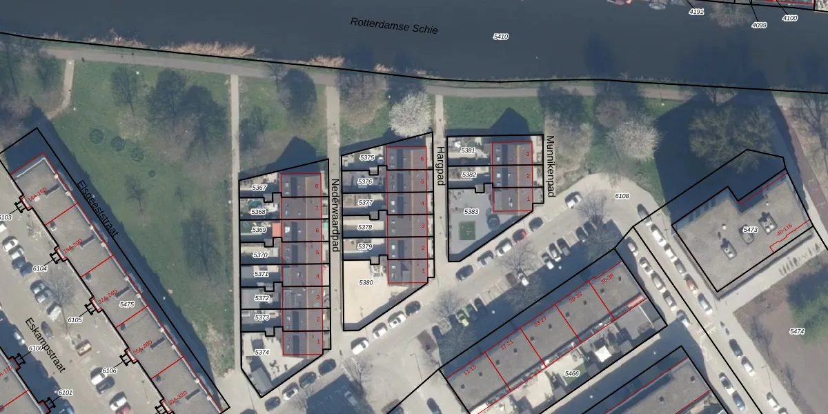 Het adres is gelegen op perceel 5377 in de sectie C en de kadastrale gemeente Overschie. De kadastrale aanduiding is aldus OVS00-C-5377. Het perceel is kleiner dan gemiddeld in Overschie. Het perceel is 120 m² groot, terwijl het gemiddelde ligt op 2523,71 m². De grootste perceeloppervlakte in de kadastrale gemeente is 80,2 ha. De kleinste oppervlakte bedraagt 0 m². Dit is het enige adres dat aanwezig is op het perceel. In de Basisregistratie Kadaster (BRK) werden de grenzen van het perceel geregistreerd op 21-12-2023.