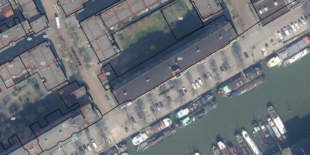 Het perceel waarop Haringvliet 393 staat heeft een oppervlakte van 1540 m². Dit is een zeer groot perceel. De perceeloppervlakte wordt geregistreerd door het Kadaster. Gedetailleerde informatie over de maten van dit perceel kunt u vinden in het rapport Kadastrale kaart met maatvoering van Haringvliet 393.