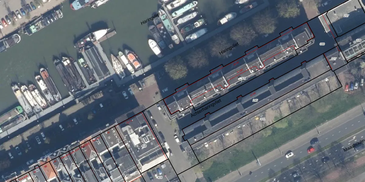 Het perceel waarop Haringvliet 62 staat heeft een oppervlakte van 1185 m². Dit is een zeer groot perceel. De perceeloppervlakte wordt geregistreerd door het Kadaster. Gedetailleerde informatie over de maten van dit perceel kunt u vinden in het rapport Kadastrale kaart met maatvoering van Haringvliet 62.