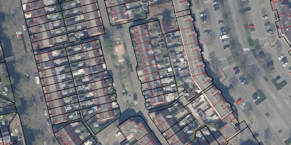 Het perceel waarop Harp 36 staat heeft een oppervlakte van 894 m². Dit is een groot perceel. De perceeloppervlakte wordt geregistreerd door het Kadaster. Gedetailleerde informatie over de maten van dit perceel kunt u vinden in het rapport Kadastrale kaart met maatvoering van Harp 36.