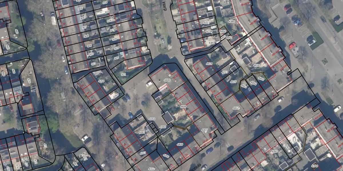 Het perceel waarop Harp 39 staat heeft een oppervlakte van 296 m². Dit is een middelgroot perceel. De perceeloppervlakte wordt geregistreerd door het Kadaster. Gedetailleerde informatie over de maten van dit perceel kunt u vinden in het rapport Kadastrale kaart met maatvoering van Harp 39.