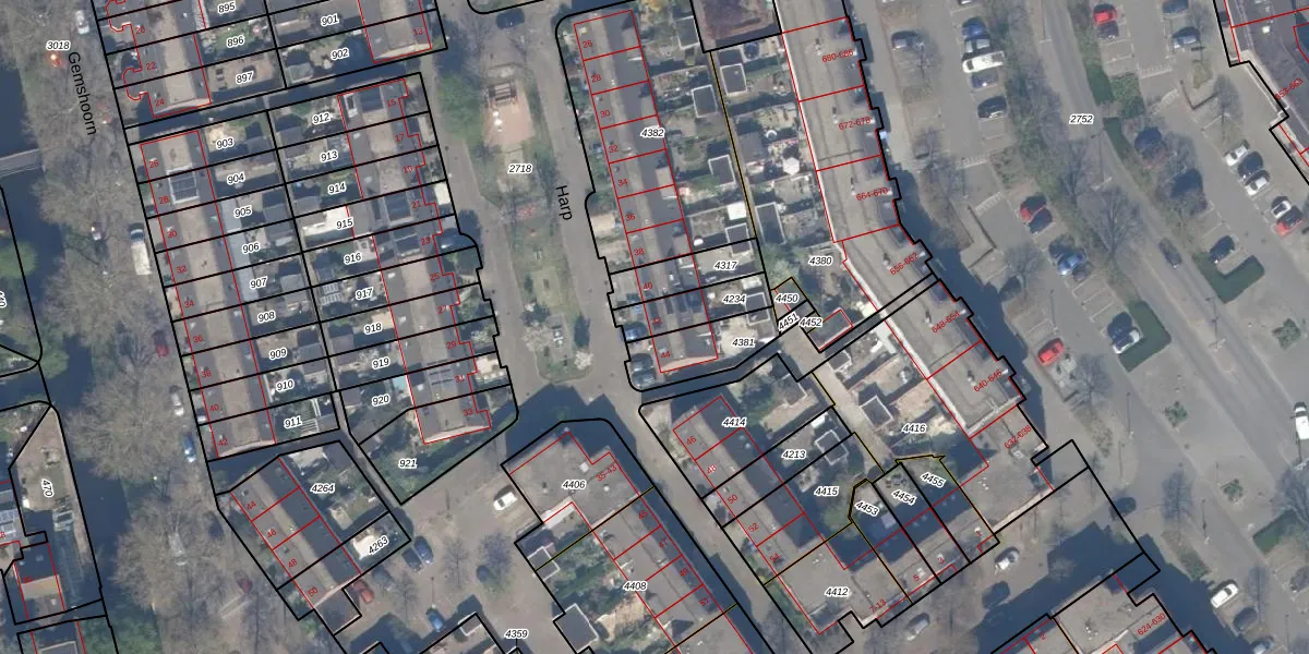 Gebruik de zoekbalk of klik op een perceel voor informatie over de adressen binnen dit perceel.