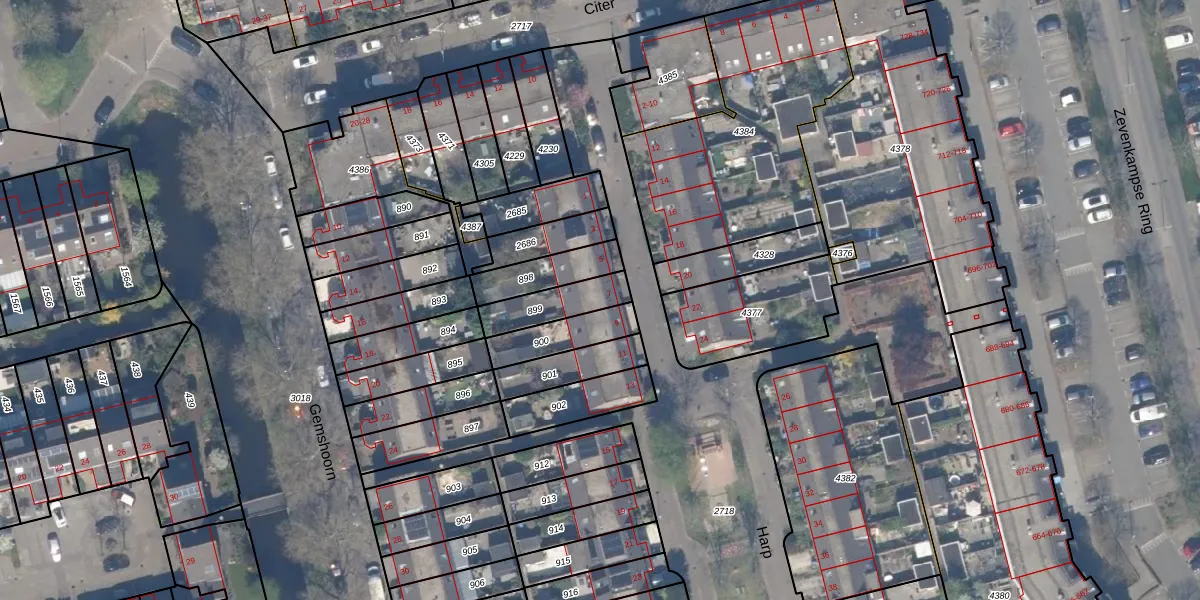Het perceel waarop Harp 7 staat heeft een oppervlakte van 136 m². Dit is een middelgroot perceel. De perceeloppervlakte wordt geregistreerd door het Kadaster. Gedetailleerde informatie over de maten van dit perceel kunt u vinden in het rapport Kadastrale kaart met maatvoering van Harp 7.