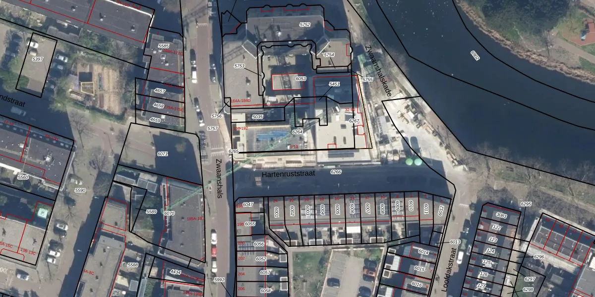 Hartenruststraat 7 is gelegen op kadastraal perceel RTD07W6264. Deze kadastrale aanduiding is uniek en wordt gebruikt door het Kadaster om eigendomsrechten en andere zakelijke rechten vast te leggen. Het perceel maakt onderdeel uit van de kadastrale gemeente Rotterdam.