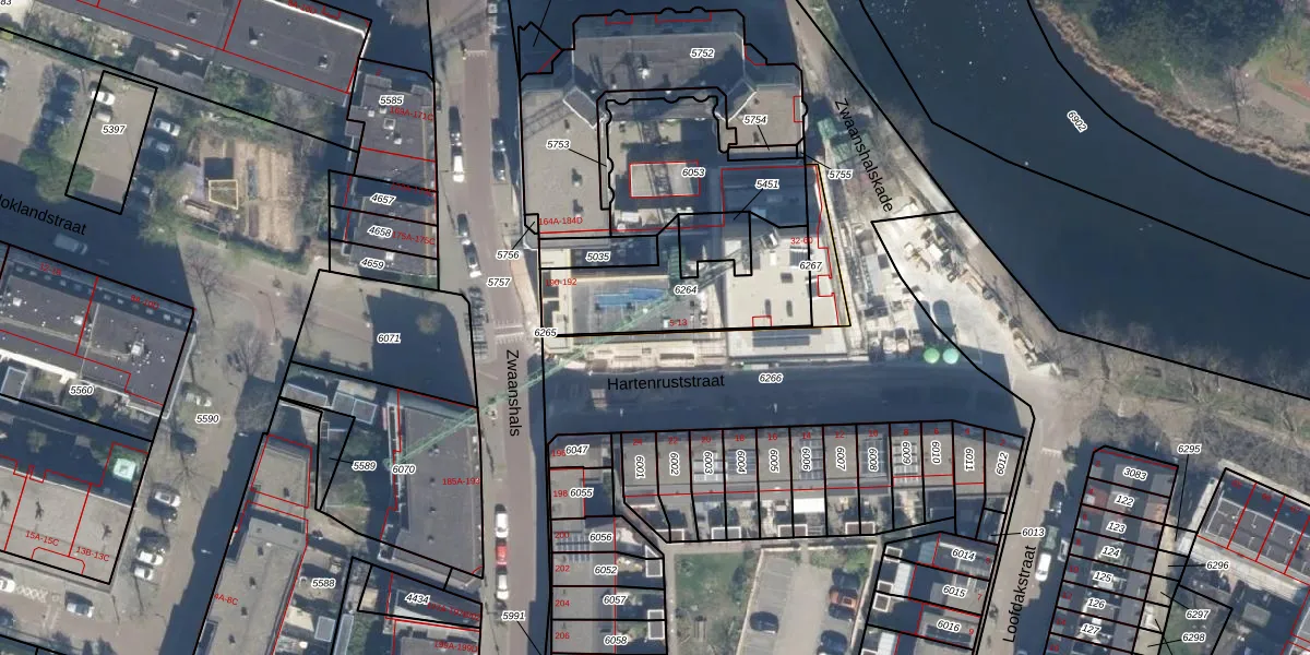 Hartenruststraat 9 is gelegen op kadastraal perceel RTD07W6264. Deze kadastrale aanduiding is uniek en wordt gebruikt door het Kadaster om eigendomsrechten en andere zakelijke rechten vast te leggen. Het perceel maakt onderdeel uit van de kadastrale gemeente Rotterdam.