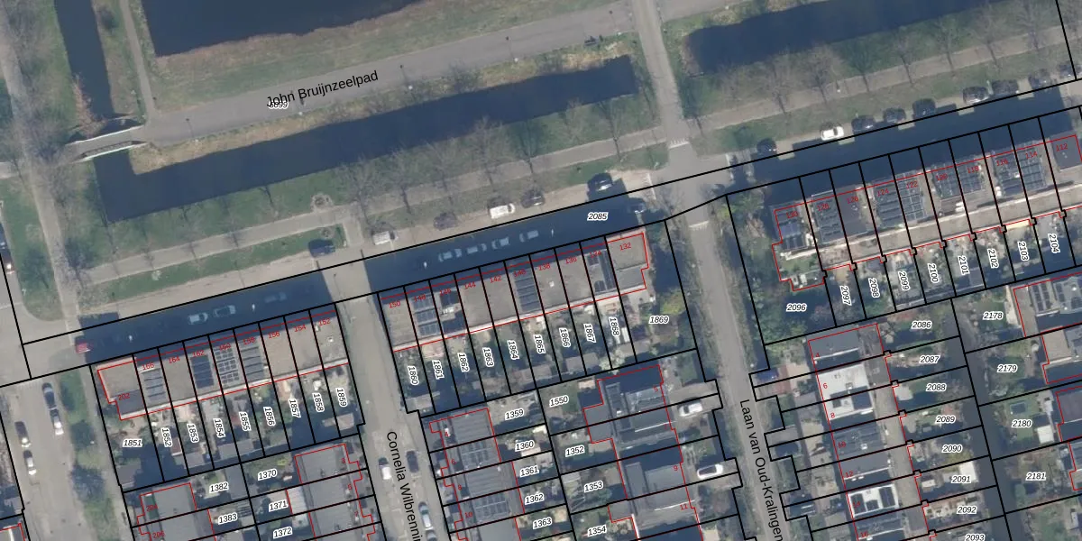 Gebruik de zoekbalk of klik op een perceel voor informatie over de adressen binnen dit perceel.