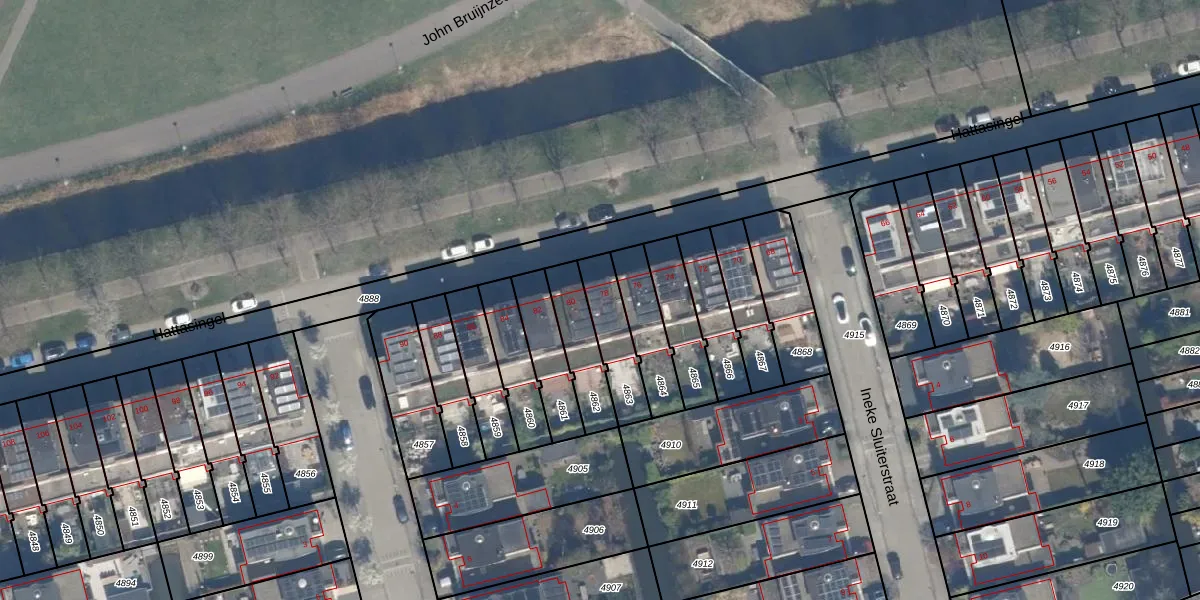 Gebruik de zoekbalk of klik op een perceel voor informatie over de adressen binnen dit perceel.