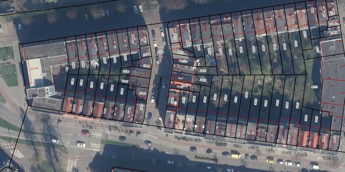 Havenzichtstraat 12-B-01 is gelegen op kadastraal perceel DHV00I2688. Deze kadastrale aanduiding is uniek en wordt gebruikt door het Kadaster om eigendomsrechten en andere zakelijke rechten vast te leggen. Het perceel maakt onderdeel uit van de kadastrale gemeente Delfshaven.