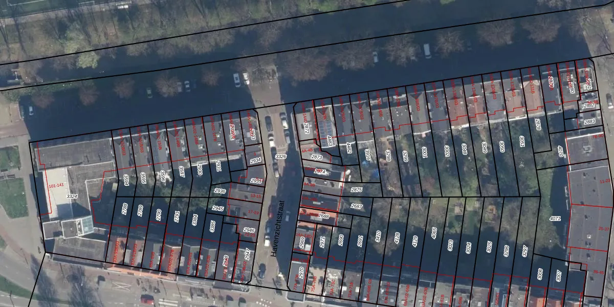 Havenzichtstraat 4-B is gelegen op kadastraal perceel DHV00I2873. Deze kadastrale aanduiding is uniek en wordt gebruikt door het Kadaster om eigendomsrechten en andere zakelijke rechten vast te leggen. Het perceel maakt onderdeel uit van de kadastrale gemeente Delfshaven.
