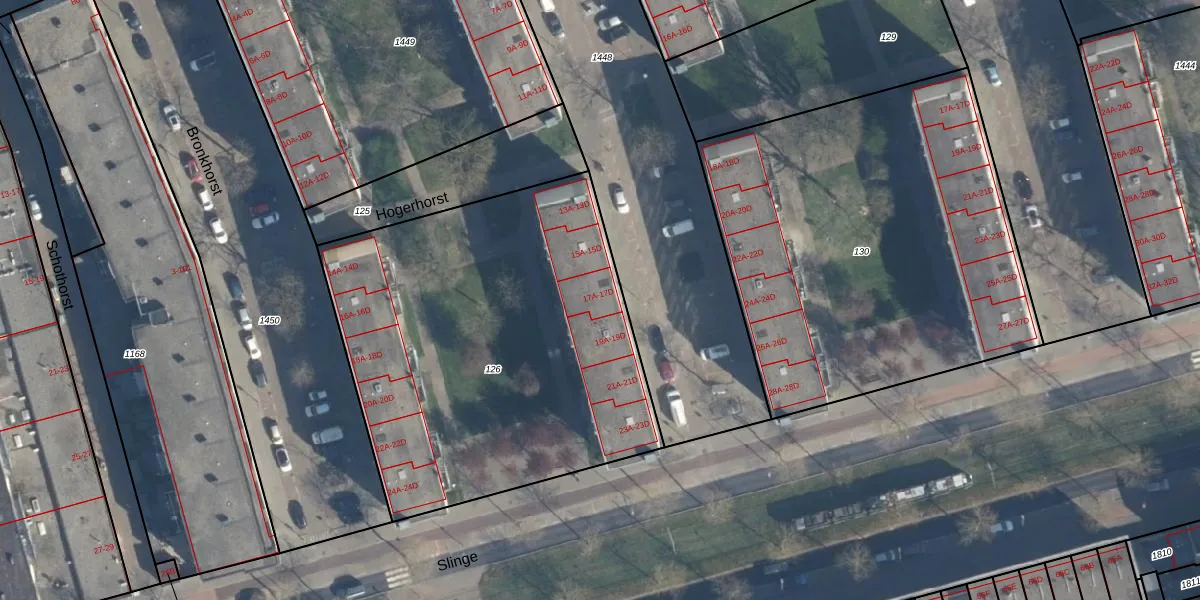 Het adres is gelegen op perceel 126 in de sectie K en de kadastrale gemeente Charlois. De kadastrale aanduiding is aldus CLS00-K-126. Het perceel is met 2248 m² relatief groot. Het gemiddelde ligt in de kadastrale gemeente Charlois op 1143,45 m². De grootste perceeloppervlakte in de kadastrale gemeente is 1,09 km². De kleinste oppervlakte bedraagt 0 m². Op het perceel zijn 48 adressen aanwezig. In de Basisregistratie Kadaster (BRK) werden de grenzen van het perceel geregistreerd op 27-05-2009.