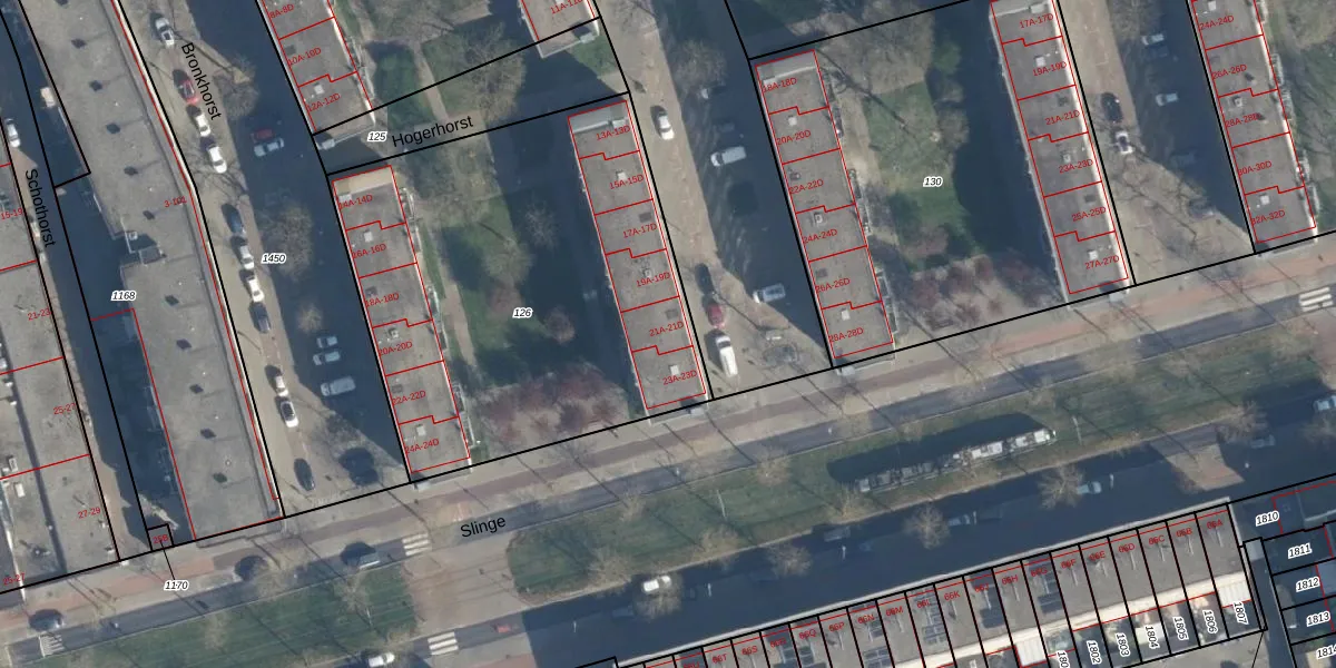 Het adres is gelegen op perceel 126 in de sectie K en de kadastrale gemeente Charlois. De kadastrale aanduiding is aldus CLS00-K-126. Het perceel is met 2248 m² relatief groot. Het gemiddelde ligt in de kadastrale gemeente Charlois op 1143,45 m². De grootste perceeloppervlakte in de kadastrale gemeente is 1,09 km². De kleinste oppervlakte bedraagt 0 m². Er zijn 48 adressen aanwezig op het perceel. De huidige grenzen van het perceel zijn digitaal in de Basisregistratie Kadaster (BRK) geregistreerd op 27-05-2009.