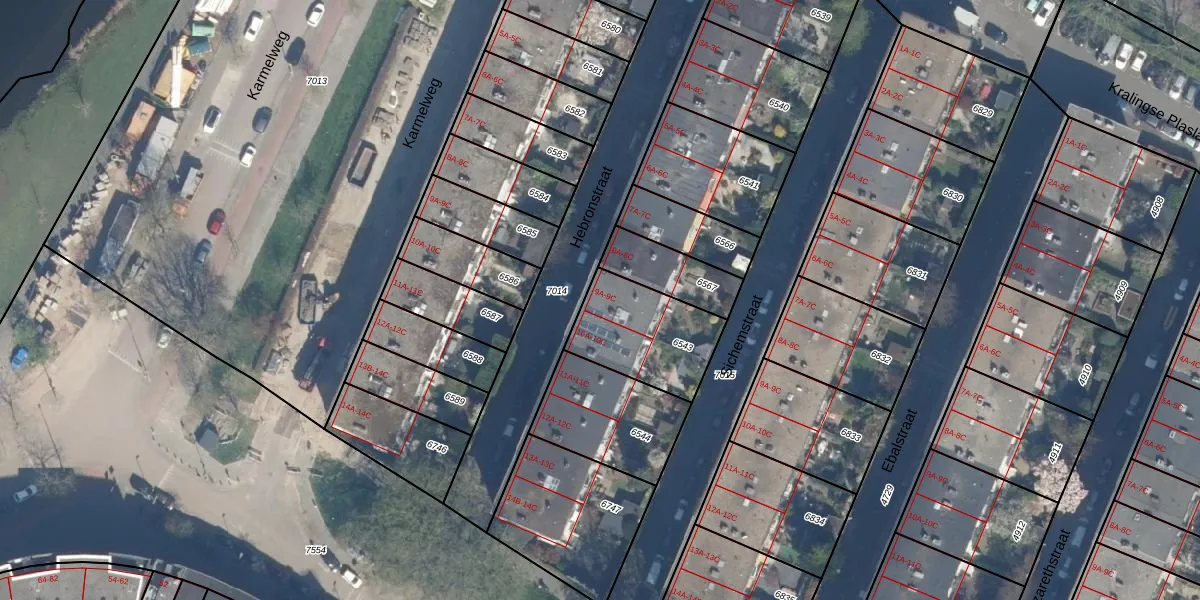 Hebronstraat 9-A is gelegen op kadastraal perceel RTD07R6543. Deze kadastrale aanduiding is uniek en wordt gebruikt door het Kadaster om eigendomsrechten en andere zakelijke rechten vast te leggen. Het perceel maakt onderdeel uit van de kadastrale gemeente Rotterdam.