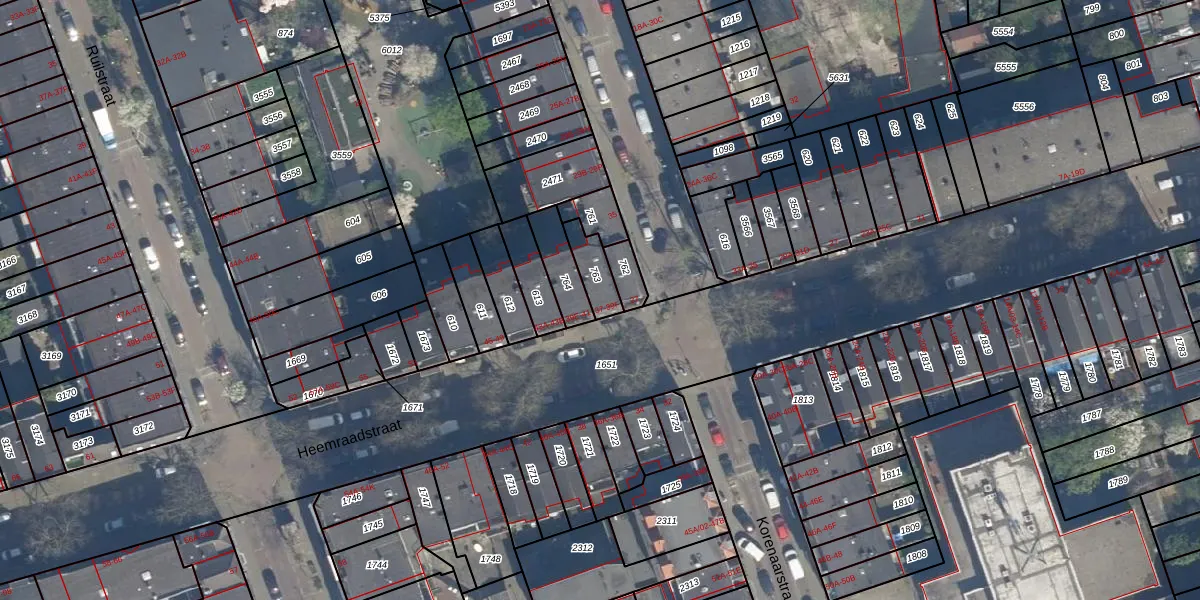 Het perceel waarop Heemraadstraat 39-C staat heeft een oppervlakte van 78 m². Dit is een klein perceel. De perceeloppervlakte wordt geregistreerd door het Kadaster. Gedetailleerde informatie over de maten van dit perceel kunt u vinden in het rapport Kadastrale kaart met maatvoering van Heemraadstraat 39-C.