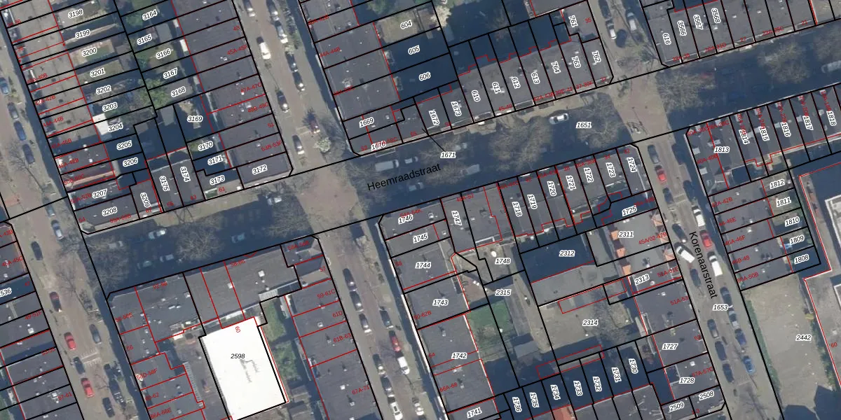 Het perceel waarop Heemraadstraat 54-K staat heeft een oppervlakte van 85 m². Dit is een klein perceel. De perceeloppervlakte wordt geregistreerd door het Kadaster. Gedetailleerde informatie over de maten van dit perceel kunt u vinden in het rapport Kadastrale kaart met maatvoering van Heemraadstraat 54-K.