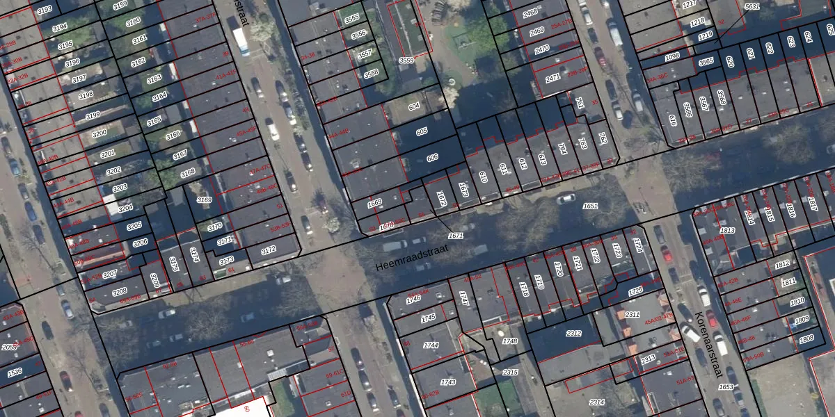 Heemraadstraat 55 is gelegen op kadastraal perceel DHV00C1671. Deze kadastrale aanduiding is uniek en wordt gebruikt door het Kadaster om eigendomsrechten en andere zakelijke rechten vast te leggen. Het perceel maakt onderdeel uit van de kadastrale gemeente Delfshaven.