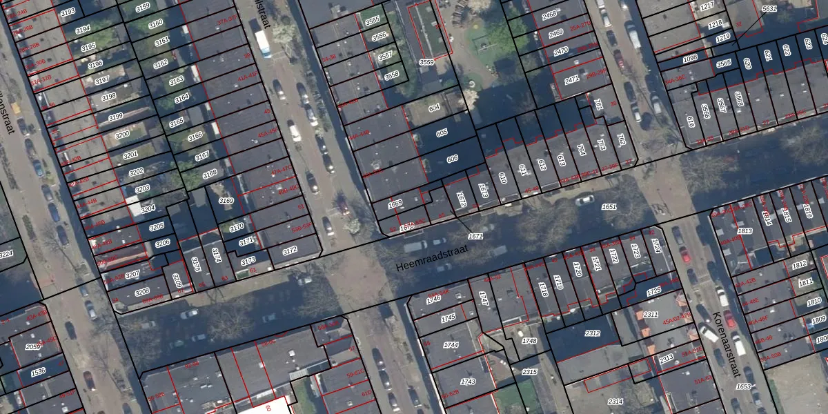 Het perceel waarop Heemraadstraat 57-C staat heeft een oppervlakte van 71 m². Dit is een klein perceel. De perceeloppervlakte wordt geregistreerd door het Kadaster. Gedetailleerde informatie over de maten van dit perceel kunt u vinden in het rapport Kadastrale kaart met maatvoering van Heemraadstraat 57-C.