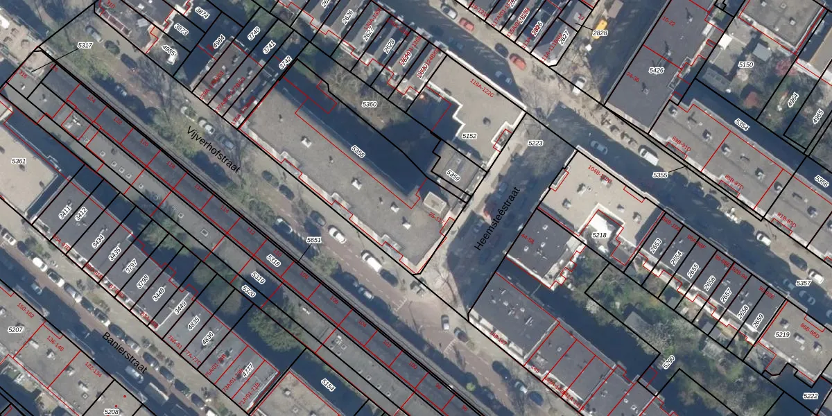 Het adres is gelegen op perceel 5358 in de sectie X en de kadastrale gemeente Rotterdam. De kadastrale aanduiding is aldus RTD08-X-5358. De oppervlakte van het perceel is 1162 m². Dat is groter dan gemiddeld in Rotterdam, waar de gemiddelde perceeloppervlakte op 689,2 m² ligt. Het kleinste perceel in de kadastrale gemeente is 0 m² groot. De grootste perceeloppervlakte is 4,0 ha. Op het perceel liggen in totaal 47 adressen. De laatste wijziging in het de Basisregistratie Kadaster (BRK) was op 24-01-2003.