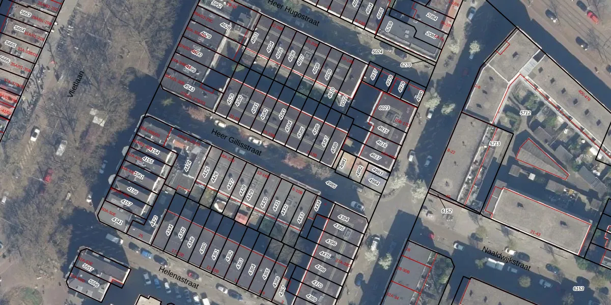 Heer Gillisstraat 13-A is gelegen op kadastraal perceel KLG00G4586. Deze kadastrale aanduiding is uniek en wordt gebruikt door het Kadaster om eigendomsrechten en andere zakelijke rechten vast te leggen. Het perceel maakt onderdeel uit van de kadastrale gemeente Kralingen.