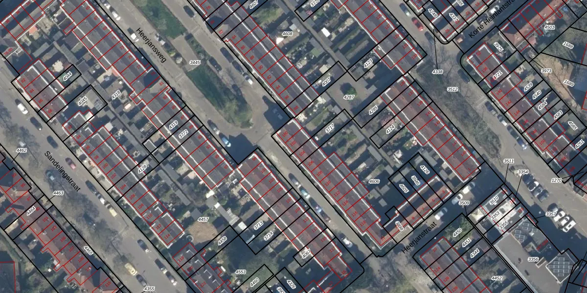 Heerjansweg 102 is gelegen op kadastraal perceel CLS00F4287. Deze kadastrale aanduiding is uniek en wordt gebruikt door het Kadaster om eigendomsrechten en andere zakelijke rechten vast te leggen. Het perceel maakt onderdeel uit van de kadastrale gemeente Charlois.