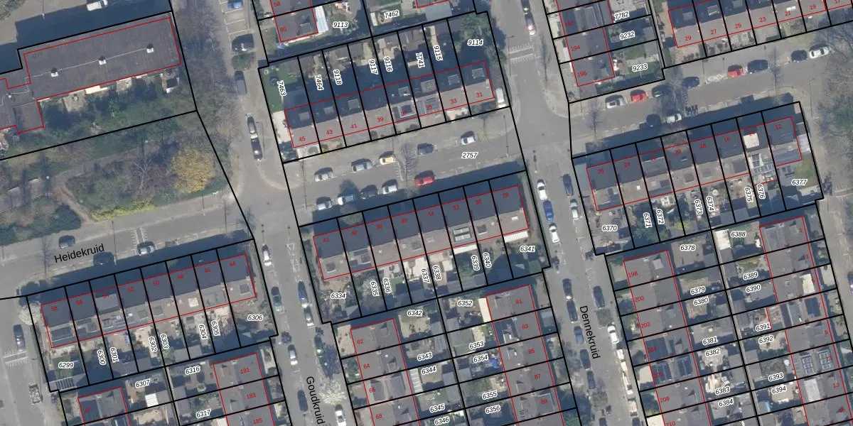 Heidekruid 34 is gelegen op kadastraal perceel HLG03B6338. Deze kadastrale aanduiding is uniek en wordt gebruikt door het Kadaster om eigendomsrechten en andere zakelijke rechten vast te leggen. Het perceel maakt onderdeel uit van de kadastrale gemeente Hillegersberg.