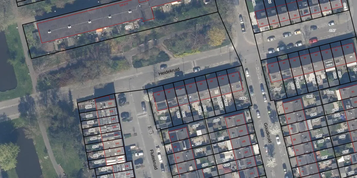 Heidekruid 54 is gelegen op kadastraal perceel HLG03B6301. Deze kadastrale aanduiding is uniek en wordt gebruikt door het Kadaster om eigendomsrechten en andere zakelijke rechten vast te leggen. Het perceel maakt onderdeel uit van de kadastrale gemeente Hillegersberg.