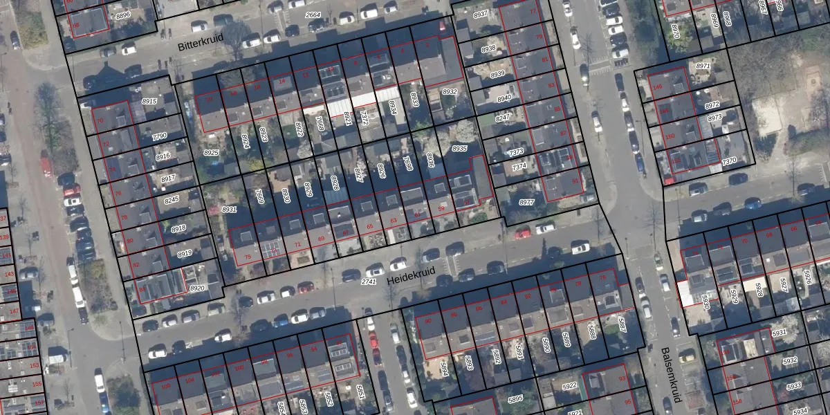Het perceel waarop Heidekruid 61 staat heeft een oppervlakte van 150 m². Dit is een middelgroot perceel. De perceeloppervlakte wordt geregistreerd door het Kadaster. Gedetailleerde informatie over de maten van dit perceel kunt u vinden in het rapport Kadastrale kaart met maatvoering van Heidekruid 61.